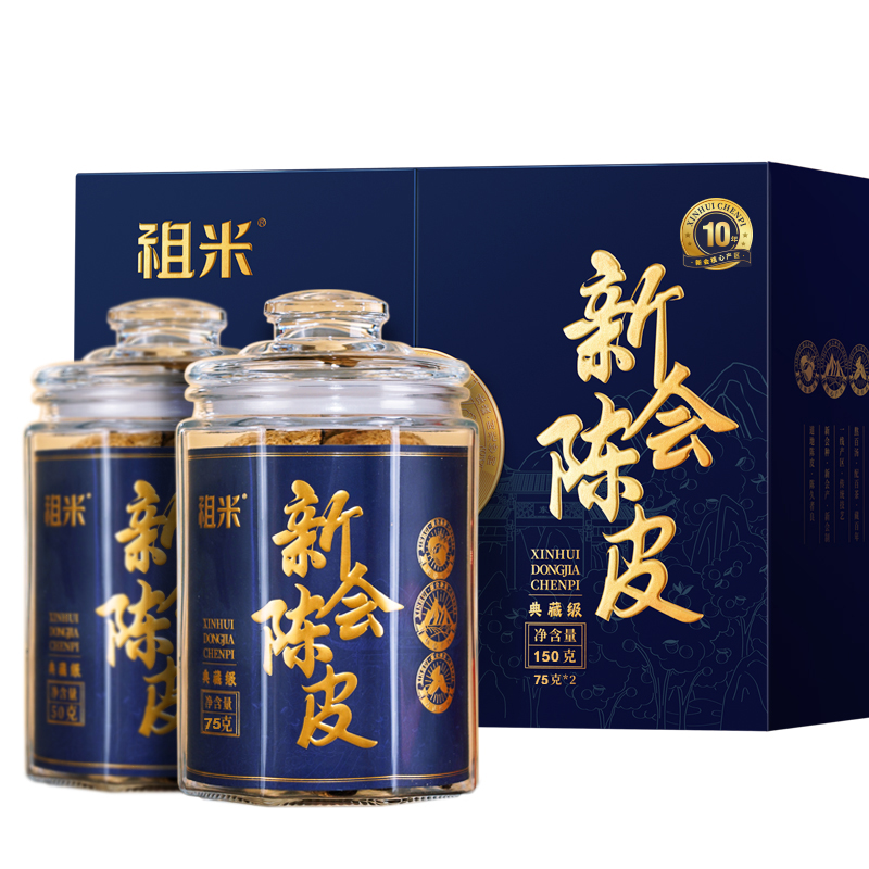 祖米10年新会陈皮东甲蓝韵陈香礼盒150克