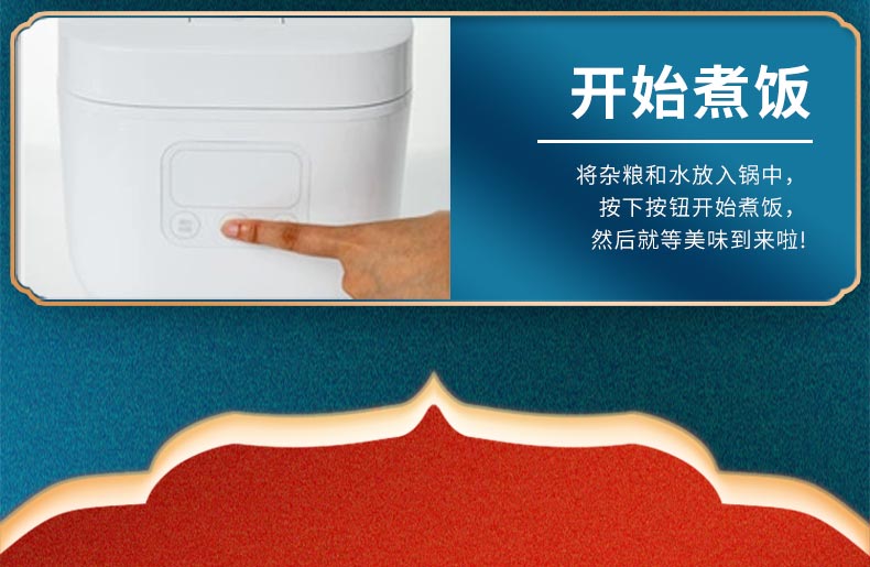 条码:6972761600833 配置:红米、血糯米、五红粥各250g 红枣100g 净重:850g 内包装:真空扁砖套镂空小盒 盒尺寸:高39*18*厚5.4 16盒/箱 箱重量:19.4kg 箱尺寸:50*39*39(0.076方)
