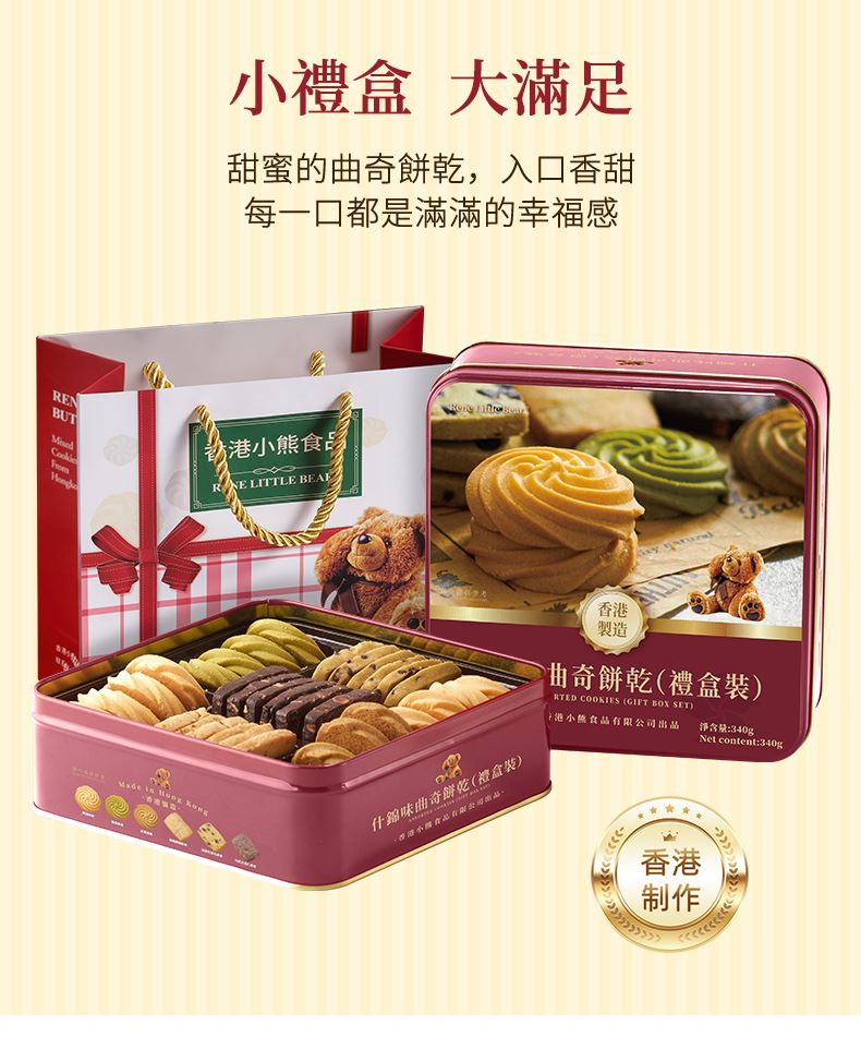【顺丰包邮】香港小熊什锦味曲奇饼干340g
